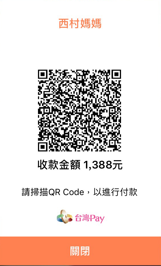 1) 台灣Pay付款 (請掃描下方QR code)